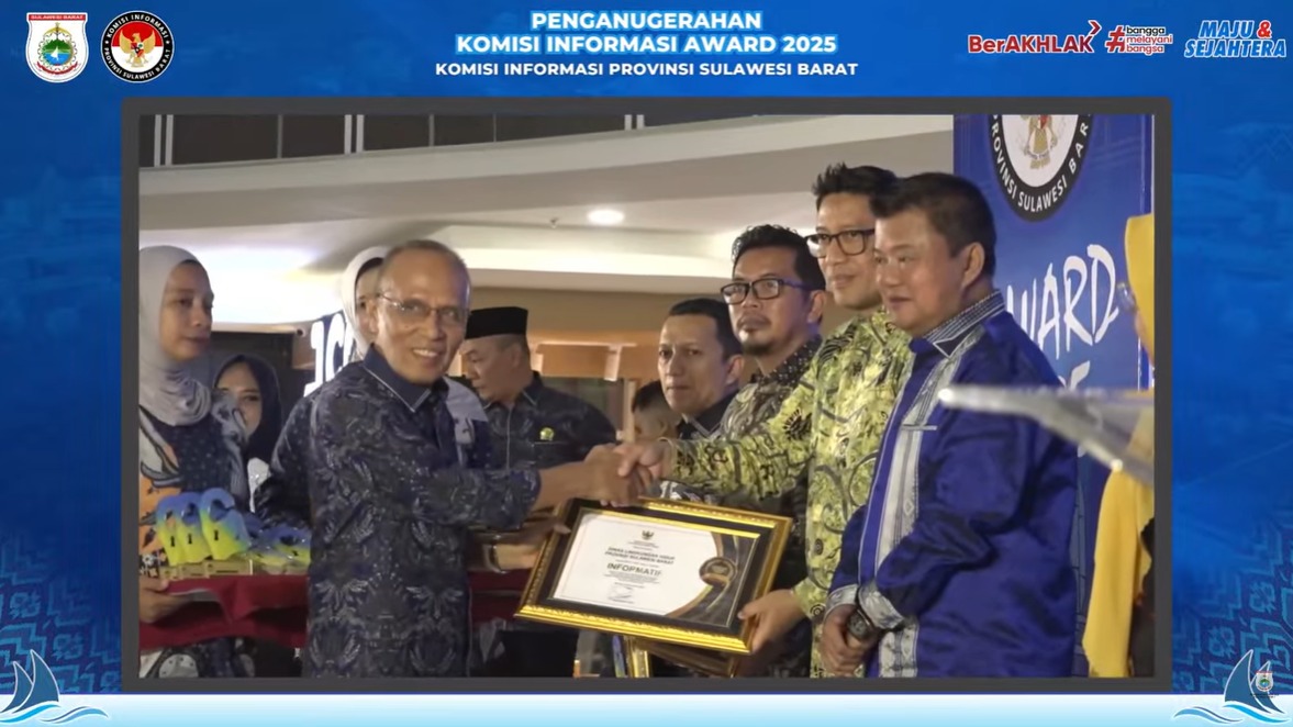 Penghargaan tersebut secara simbolis diserahkan oleh Komisi Informasi Provinsi Sulawesi Barat dan diterima langsung oleh Pelaksana Tugas (Plt.) Kepala Bapperida Sulbar, Darwis Damir.