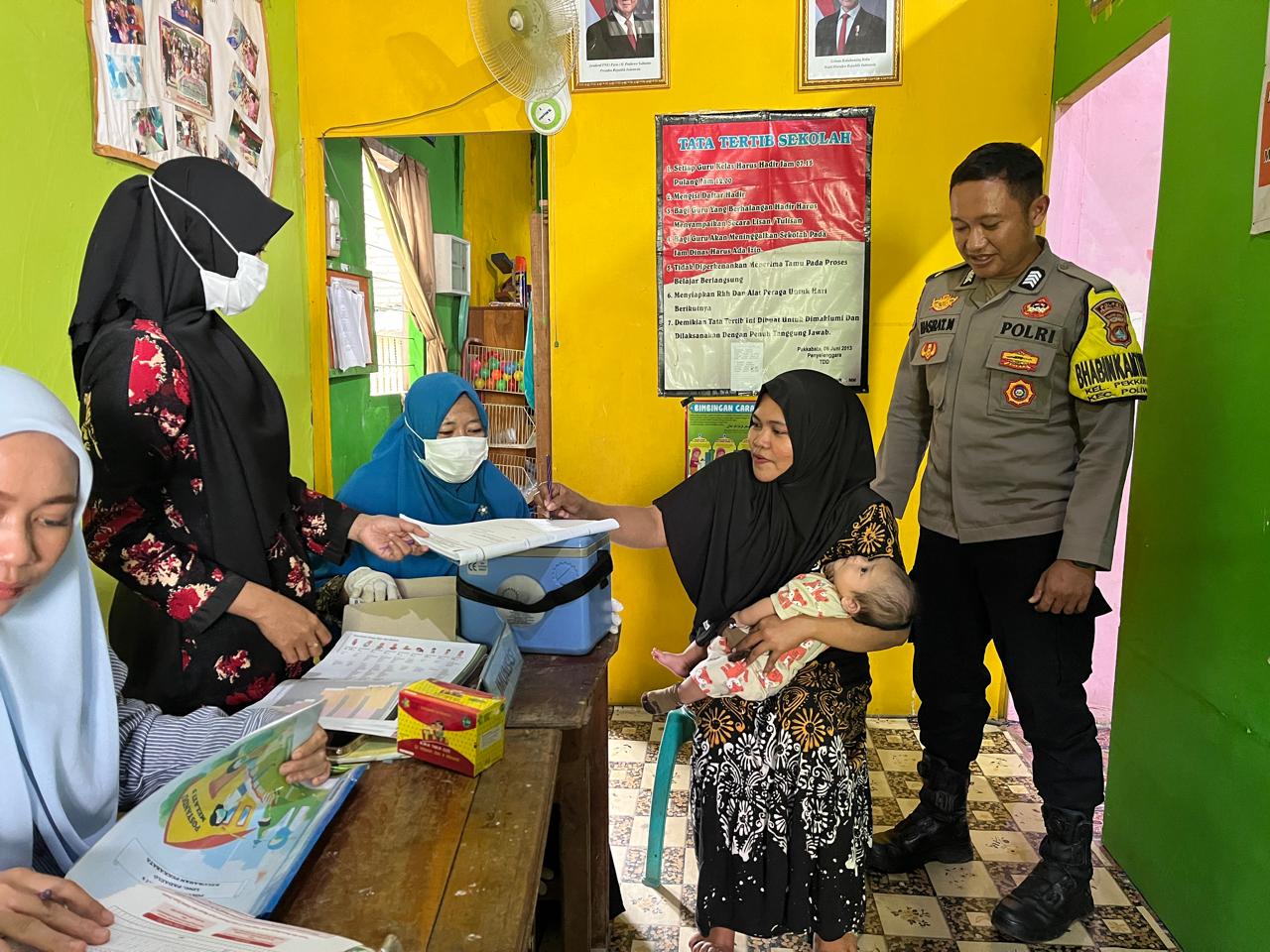 POLMAN, SULBARTODAY – Bhabinkamtibmas Kelurahan Pekkabata Polsek Polewali, Bripka Hasrat M., melaksanakan pemantauan kegiatan Posyandu Melati 3 yang berlokasi di Kelurahan Pekkabata, Kecamatan Polewali, Kabupaten Polewali Mandar, Senin (15/09/25).