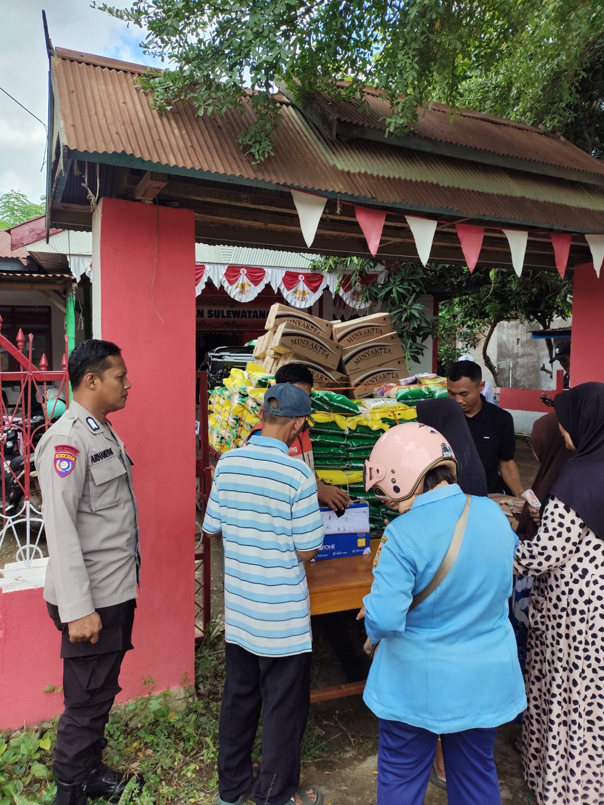 POLMAN, SULBARTODAY – Bhabinkamtibmas Kelurahan Sulewatang, Bripka Arham Syam, melakukan monitoring kegiatan Gerakan Pangan Murah yang berlangsung di Kantor Kelurahan Sulewatang, Kecamatan Polewali, Kabupaten Polewali Mandar, pada Senin (08/09/25)