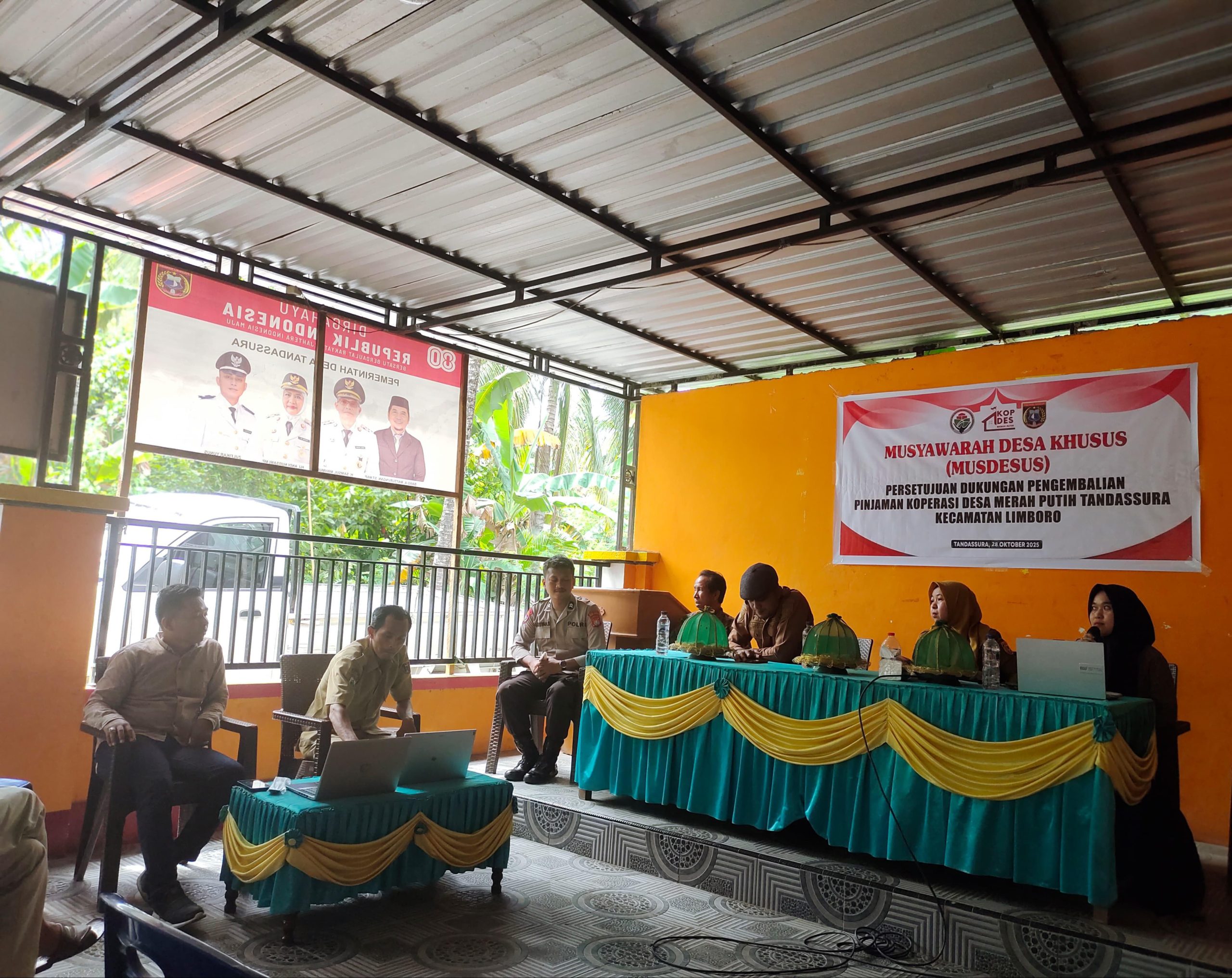 Musdesus tersebut membahas persetujuan dukungan pengembalian pinjaman Koperasi Merah Putih (KDMP) Tahun Anggaran 2025. Kegiatan ini dihadiri oleh unsur pemerintahan desa, perwakilan kecamatan, pendamping desa, serta tokoh masyarakat.