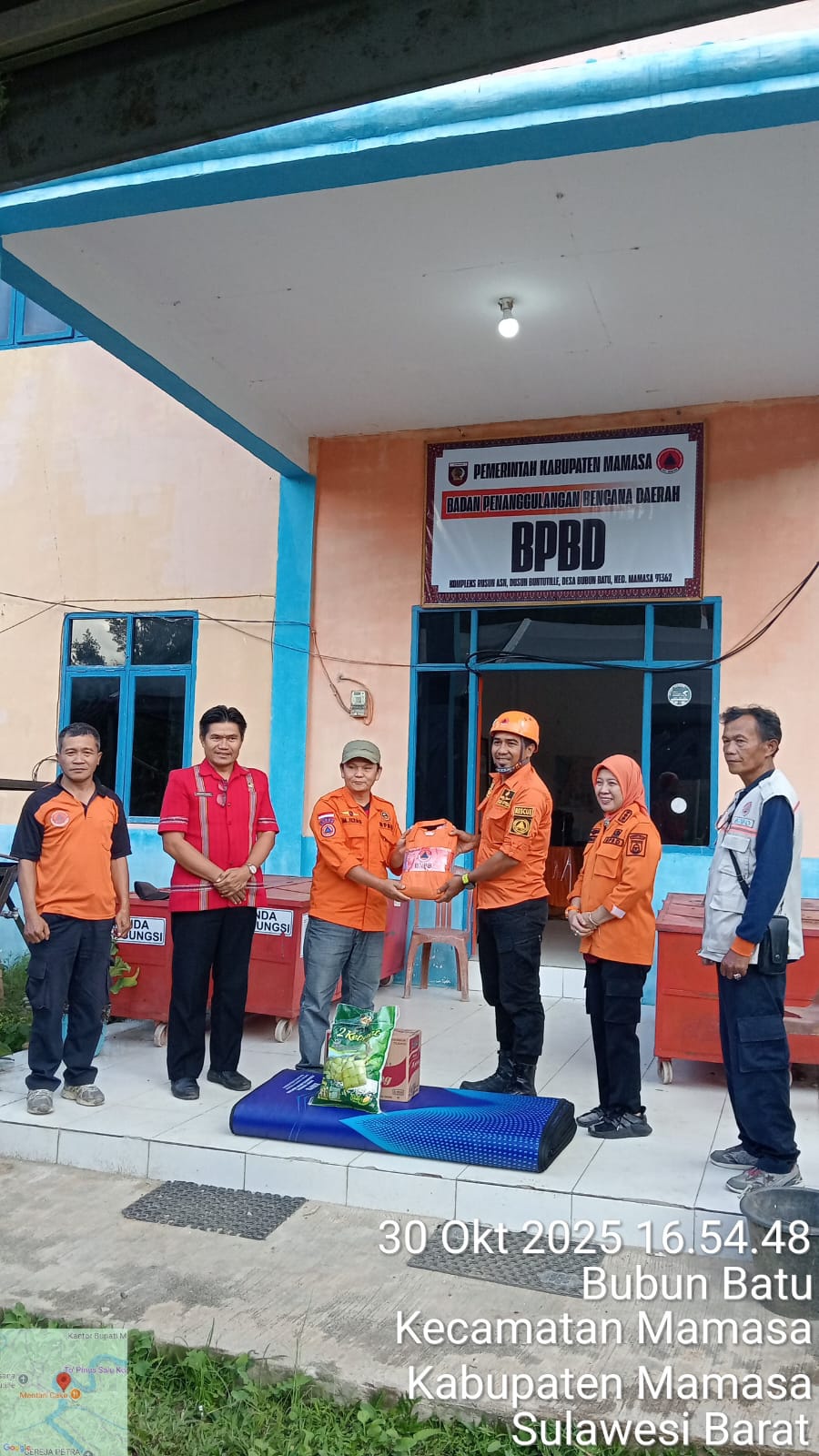 Penyerahan bantuan dilakukan oleh Kepala Bidang Kedaruratan dan Logistik BPBD Sulbar, Arnidah, bersama Kepala Bidang Pencegahan dan Kesiapsiagaan, Swandy, Kamis 30 Oktober 2025, bertempat di Kantor BPBD Kabupaten Mamasa.