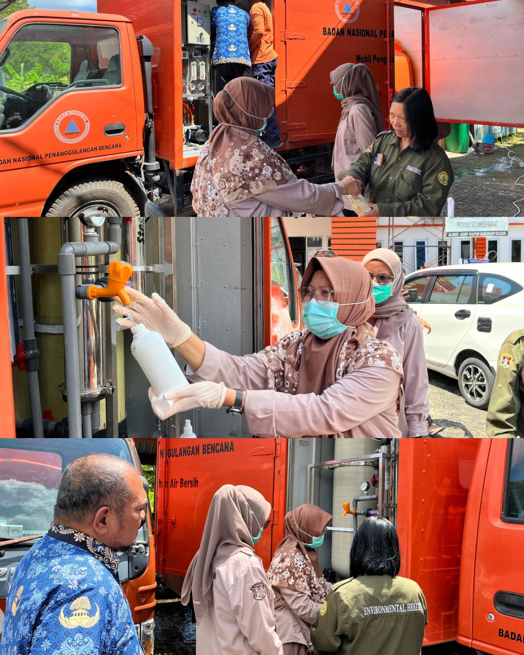 Kunjungan ini dilakukan dalam rangka pengambilan sampel air dari kendaraan water treatment milik BPBD Sulbar. Kedatangan Tim Balai Labkes-TD Sulbar di Kantor BPBD Sulbar, Mamuju, disambut langsung oleh Plt. Kalaksa BPBD Sulbar, Muhammad Yasir Fattah.