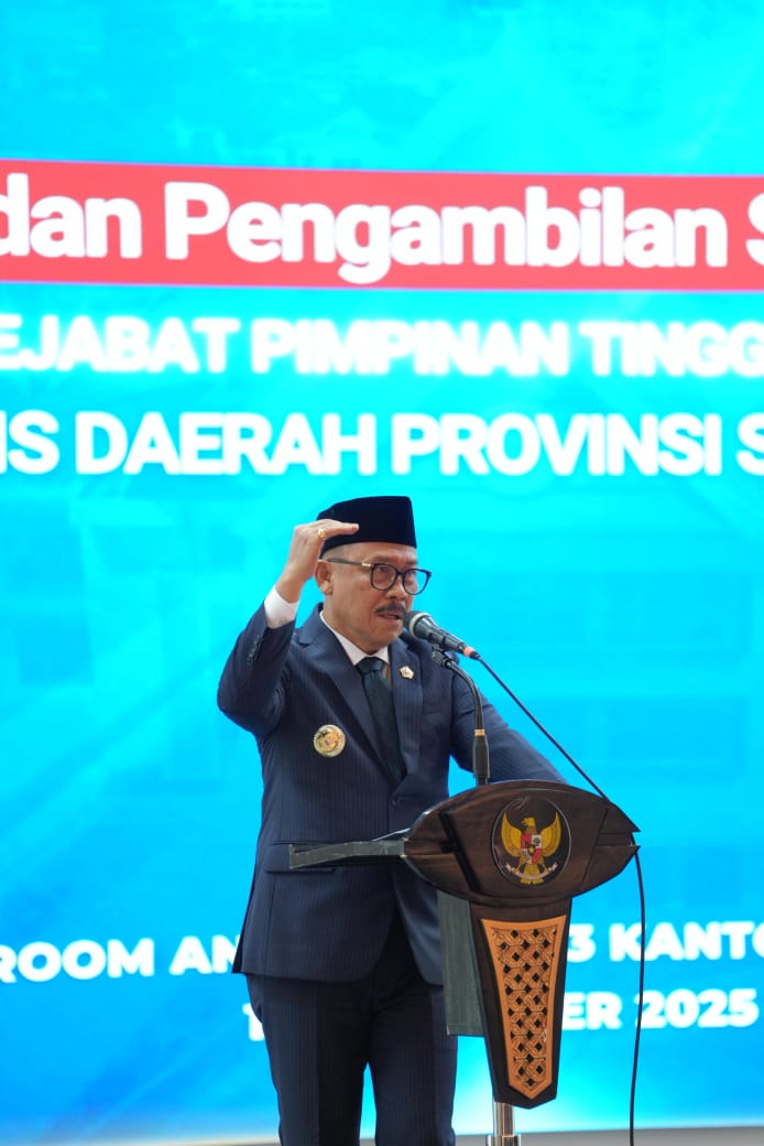 MAMUJU, SULBARTODAY – Gubernur Sulbar, Suhardi Duka (SDK), menyoroti capaian positif pertumbuhan ekonomi provinsi ke-33 ini usai melantik dan mengambil sumpah Junda Maulana sebagai Sekretaris Daerah (Sekda) Provinsi Sulbar, di Ballroom Andi Depu, Kantor Gubernur Sulbar, Senin, 10 November 2025.