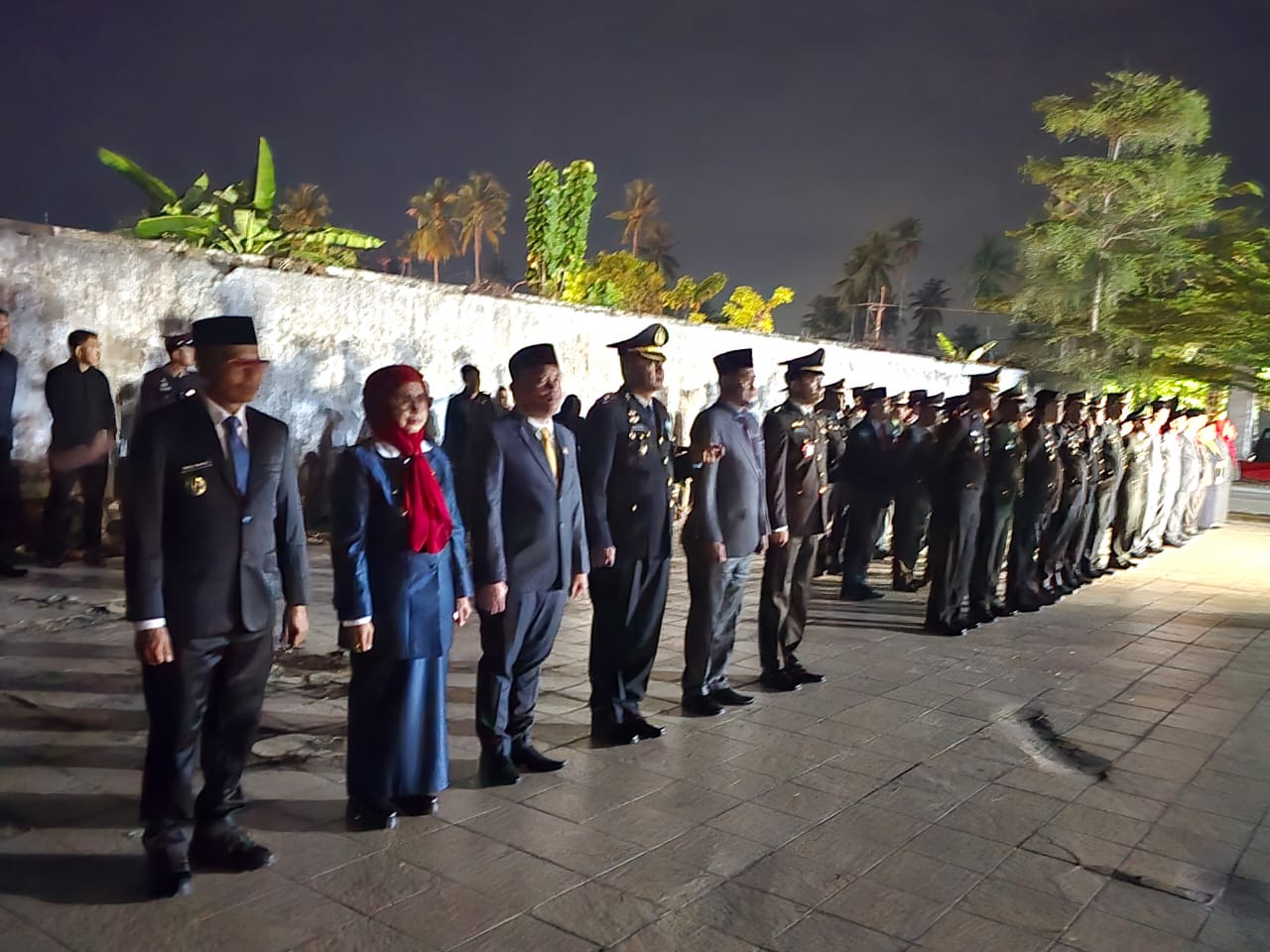 POLMAN, SULBARTODAY – Kapolres Polman Akbp Anjar Purwoko Hadiri Apel Kehormatan dan Renungan Suci Dalam rangka memperingati Hari Ulang Tahun (HUT) Kemerdekaan Republik Indonesia ke-80, bersama jajaran Forkopimda Kabupaten Polewali Mandar di Taman Makam Pahlawan (TMP) Desa Rea, Kecamatan Binuang, Kabupaten Polman Sabtu malam (16/8/2024)