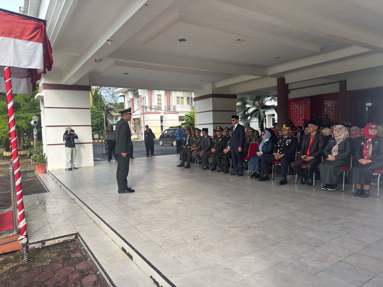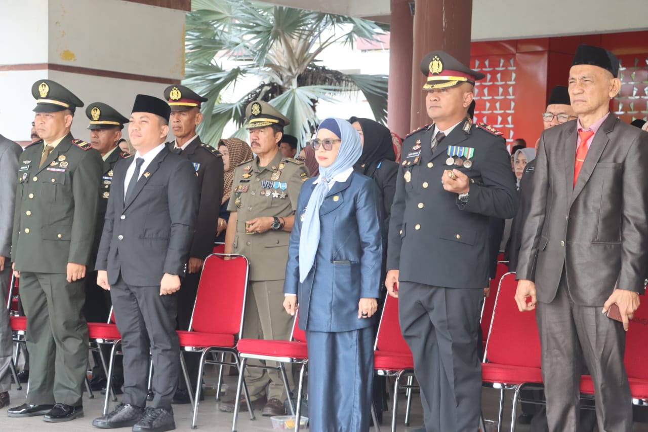 Rangkaian kegiatan berlangsung dengan tertib, mulai dari pengibaran bendera Merah Putih, pembacaan teks Pancasila, pembukaan UUD 1945, serta pembacaan doa sebagai penutup upacara. (rls)
