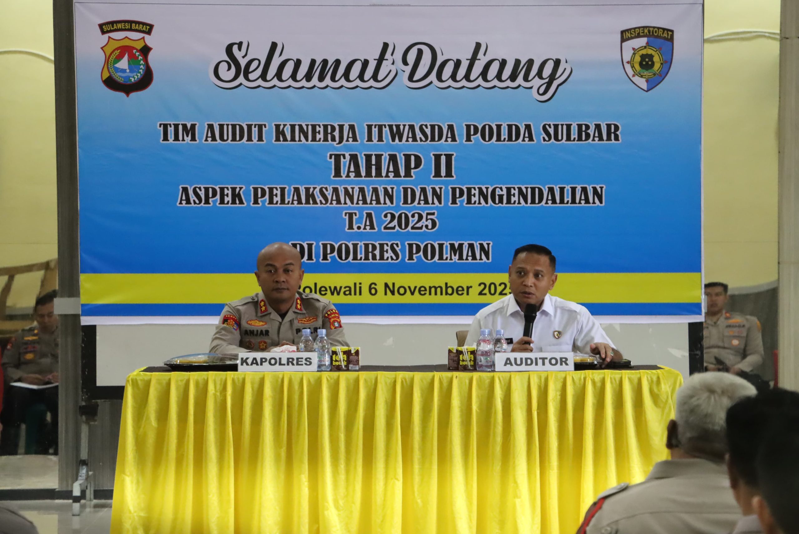 “Kami menyambut baik kegiatan audit ini sebagai bagian dari upaya peningkatan kualitas kinerja di lingkungan Polres Polman. Mohon arahan, bimbingan, serta masukan dari tim auditor untuk perbaikan pelaksanaan tugas kami ke depan,” ujar AKBP Anjar Purwoko.