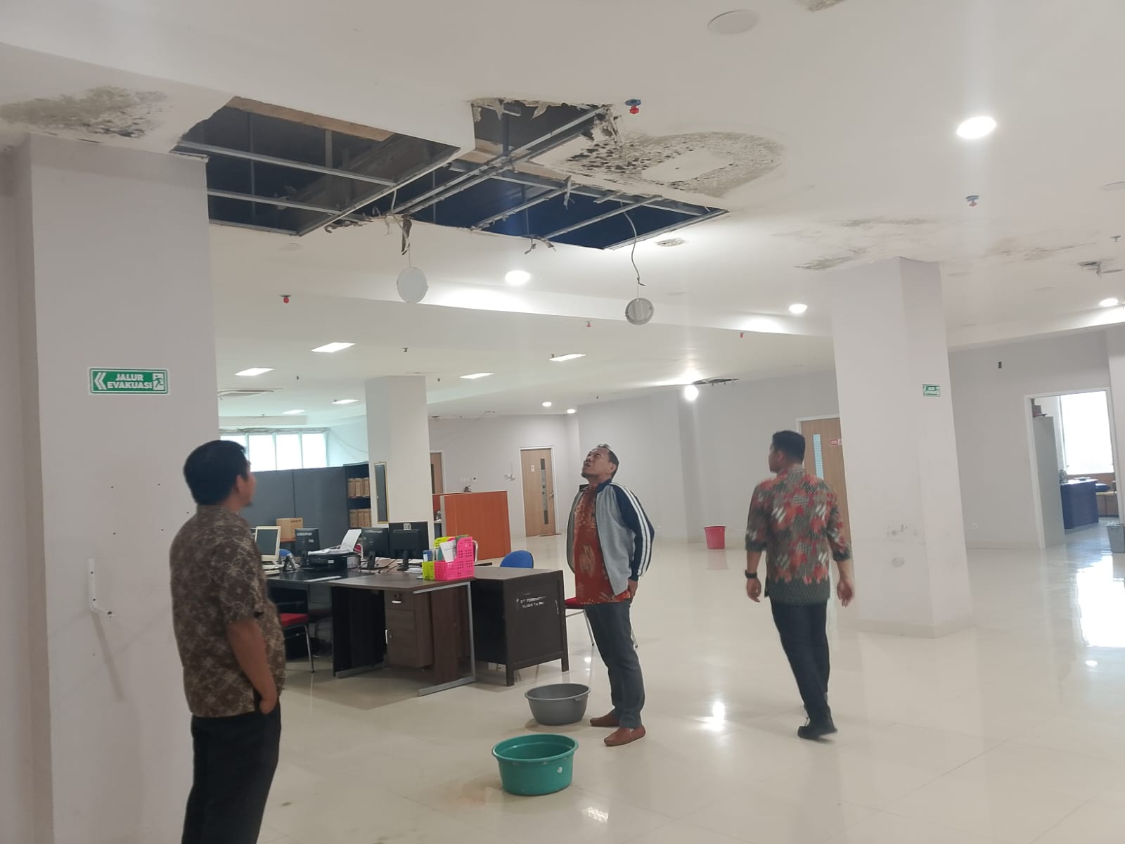Dalam laporan tersebut, mereka menguraikan kerusakan parah pada plafon akibat rembesan air dari lantai 4 dan 5 gedung yang membahayakan keselamatan, tidak hanya bagi pegawai, tetapi juga bagi seluruh aparatur dan masyarakat yang beraktivitas di gedung ini.