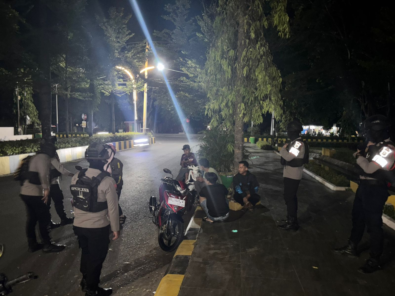 Kegiatan patroli malam hari seperti ini merupakan langkah preventif kepolisian dalam menciptakan rasa aman dan nyaman bagi warga.