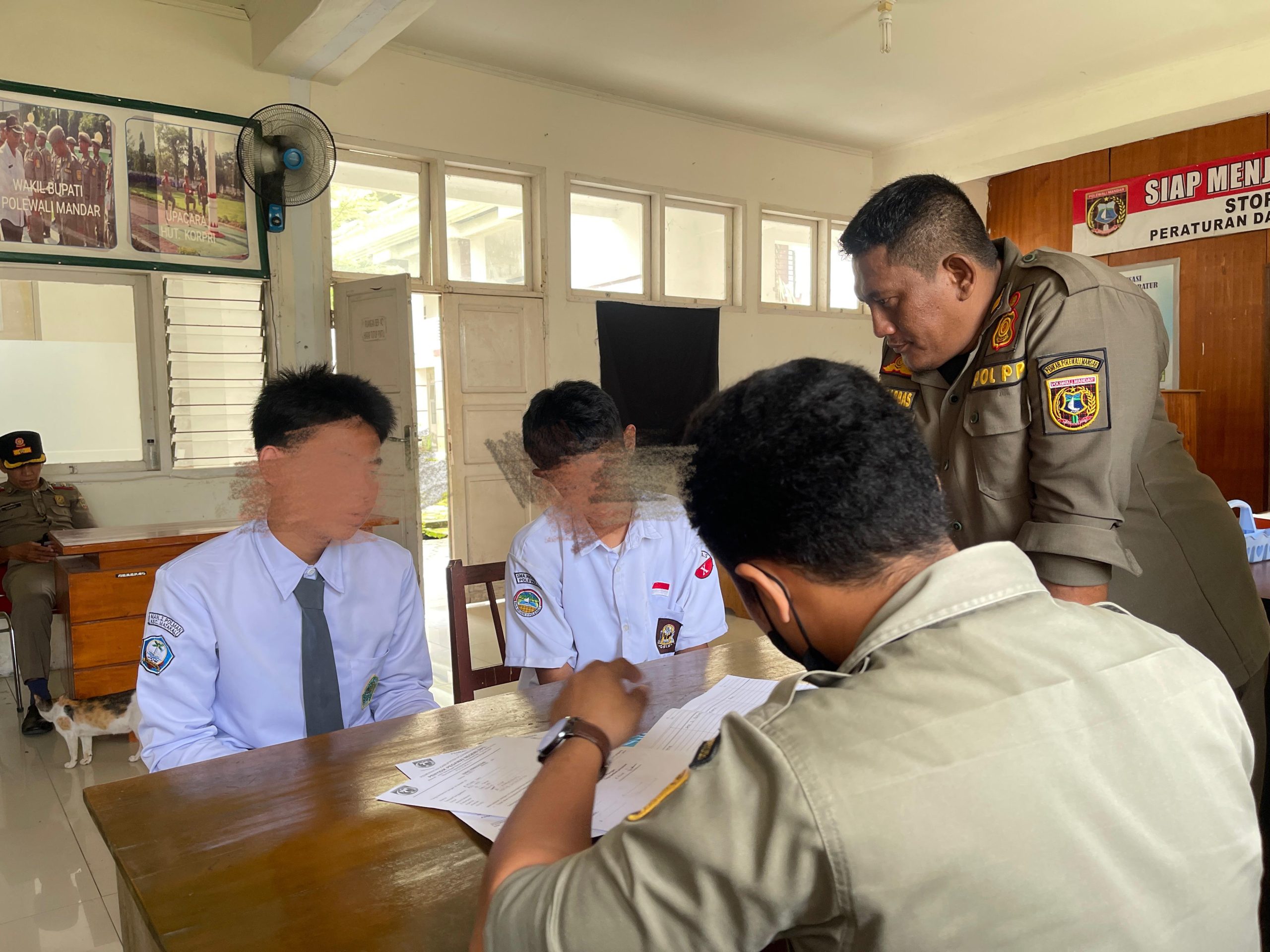 Selain itu, Satpol PP juga menindaklanjuti laporan masyarakat terkait adanya pelajar yang sering bolos dan nongkrong di beberapa titik tertentu pada saat jam belajar. Dari hasil patroli, petugas menemukan dua pelajar, masing-masing dari MAN 2 Matakali dan SMAN 3 Polewali yang kedapatan berada di luar lingkungan sekolah. Kedua pelajar tersebut kemudian dibawa dan dipanggilkan pihak sekolah untuk diberikan pembinaan lebih lanjut.