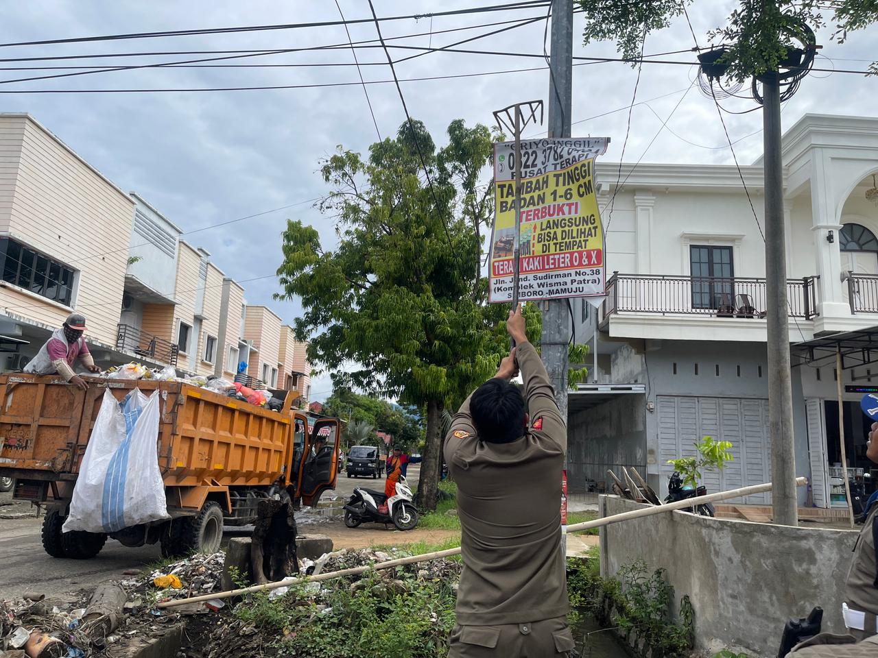 Setelah penertiban PKL, petugas melanjutkan patroli dengan menertibkan sejumlah reklame dan spanduk yang dipasang pada tiang listrik. Penertiban ini dilakukan karena pemasangan tersebut melanggar Peraturan Bupati Polewali Mandar Nomor 21 Tahun 2013 tentang Penyelenggaraan Reklame dan Alat Peraga Kampanye.