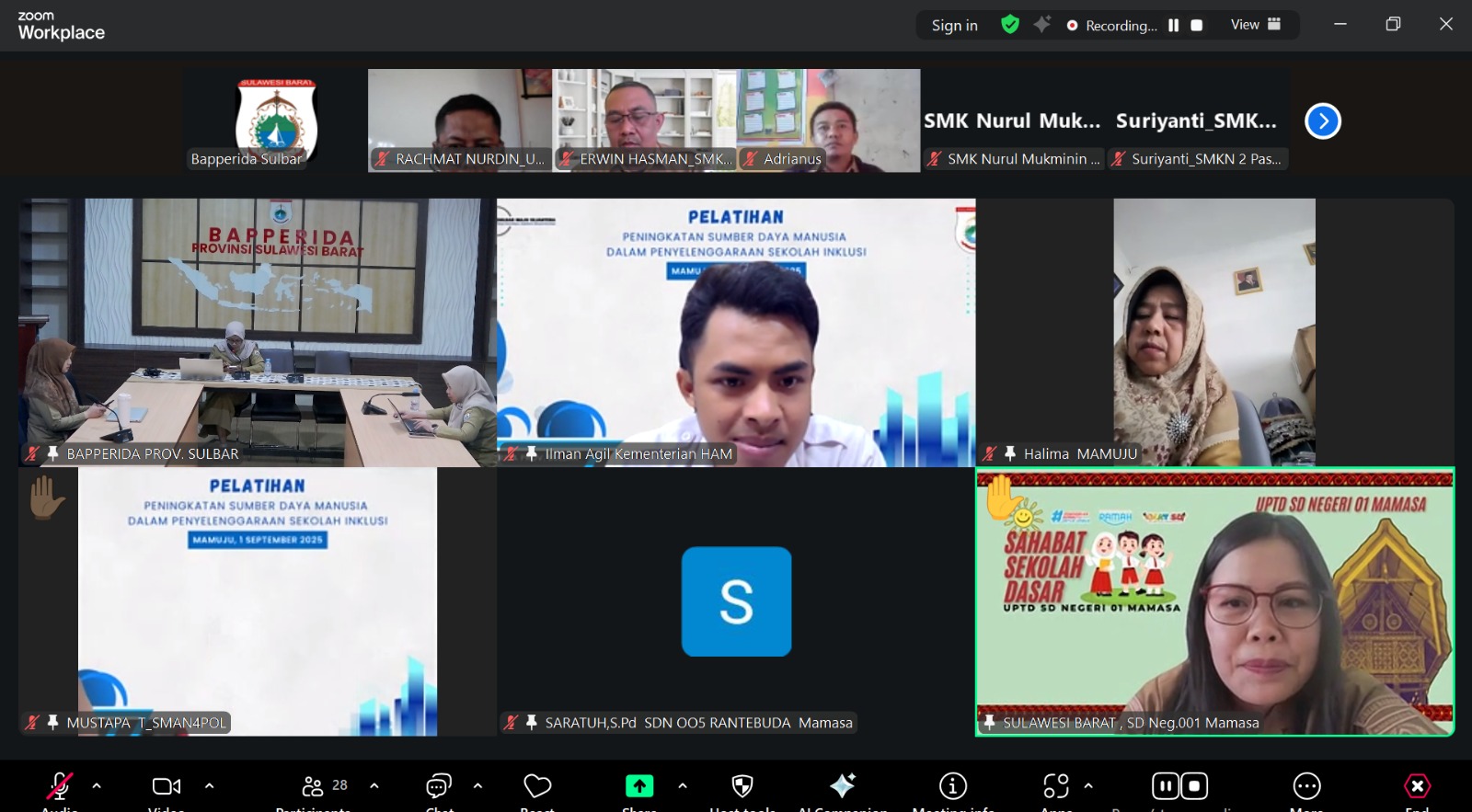 MAMUJU, SULBARTODAY – Pemprov Sulbar melalui Bapperida menggelar kegiatan Peningkatan Sumber Daya Manusia (SDM) dalam Penyelenggaraan Sekolah Inklusi, bertempat di Ruang Rapat RPJMD dan media virtual Zoom, Senin 1 September 2025.