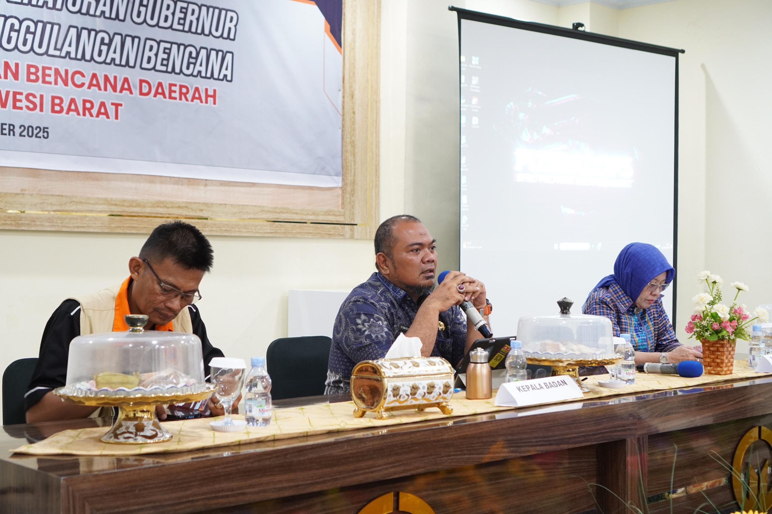 Plt. Kalaksa BPBD Sulbar, Muhammad Yasir Fattah, dalam sambutannya menegaskan pentingnya regulasi ini sebagai pijakan hukum yang kuat dalam penyelenggaraan penanggulangan bencana.