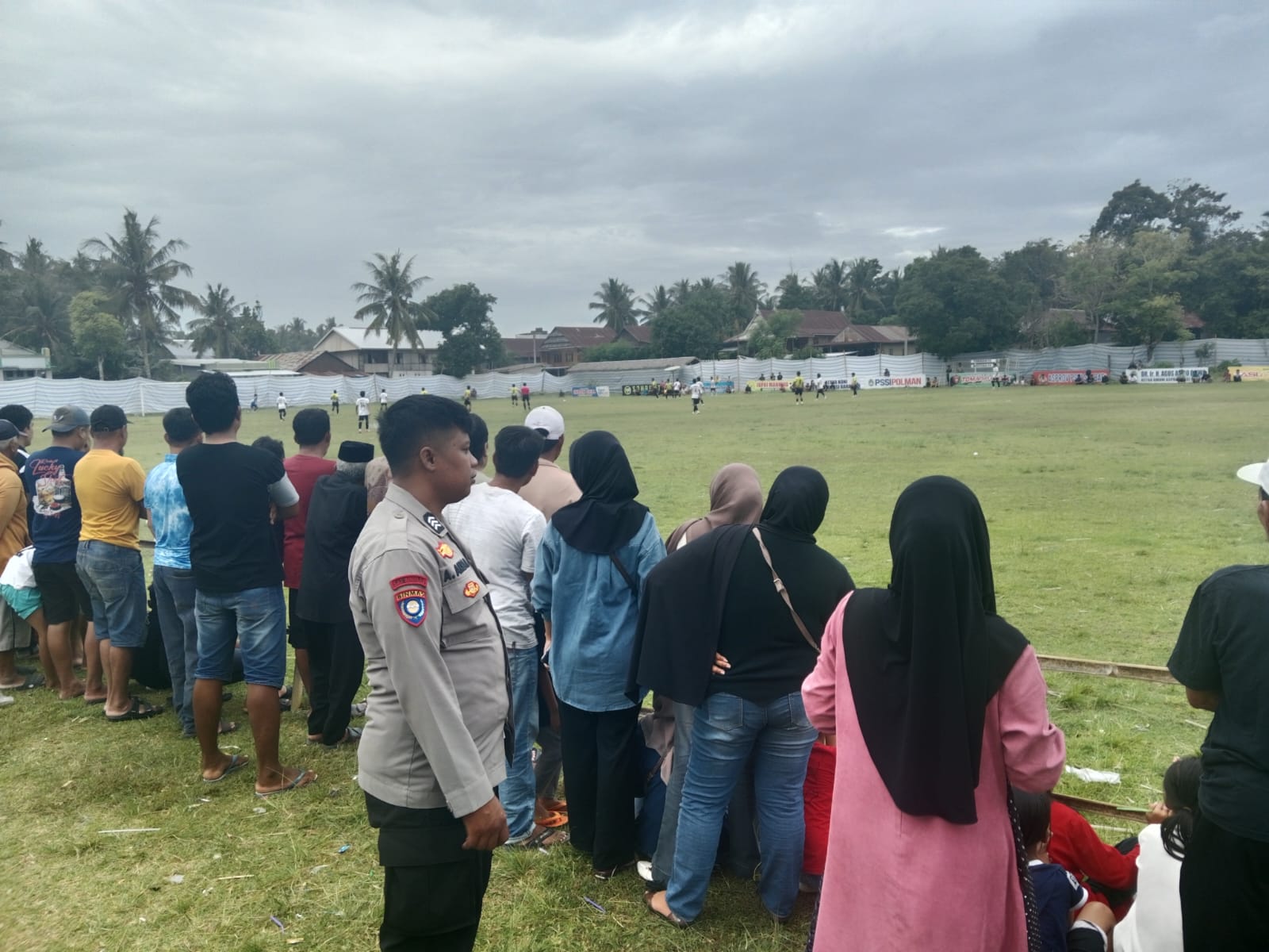 POLMAN, SULBARTODAY – Personel Polsek Campalagian melaksanakan pemantauan, monitoring, sekaligus pengamanan jalannya pertandingan semifinal Turnamen Sepak Bola Tomadio Cup IX Tahun 2025 di Lapangan Sepak Bola Gasrat, Desa Bonde, Kecamatan Campalagian, Kabupaten Polewali Mandar yang digelar pada Selasa (16/9/2025) sore,