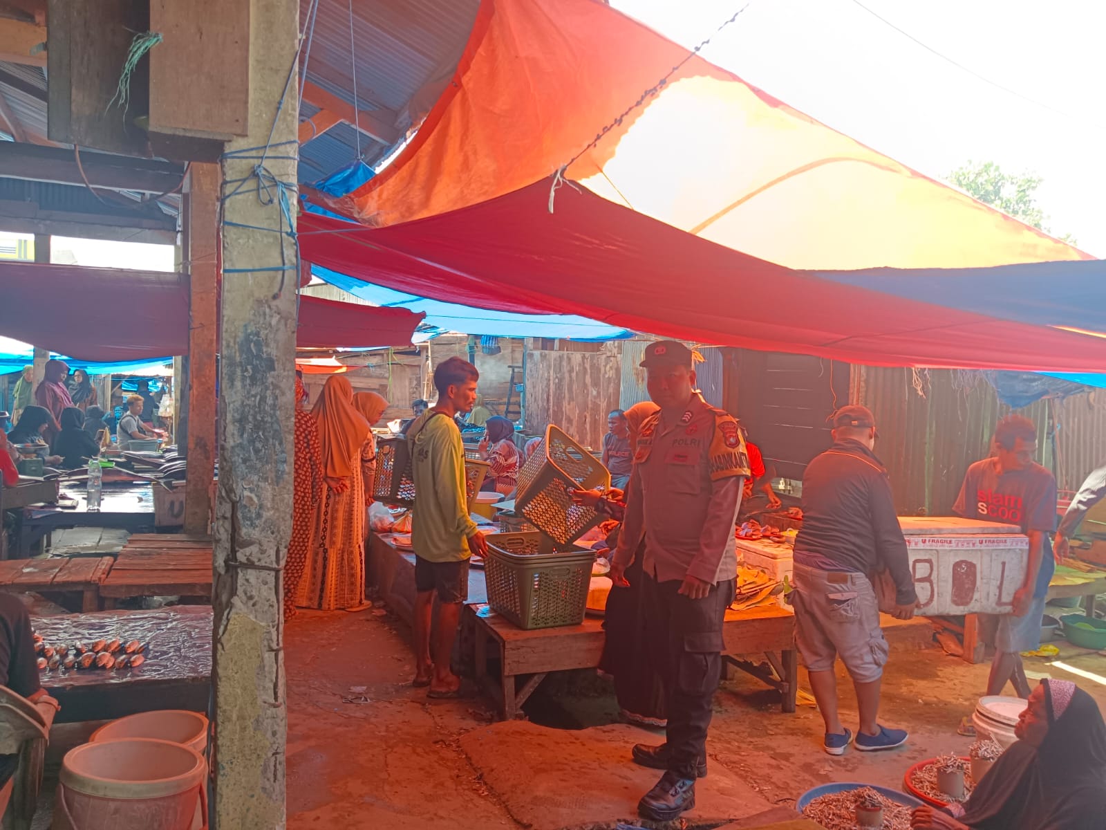 Dalam patroli tersebut, petugas menyasar titik-titik keramaian serta melakukan pemantauan situasi di sekitar pasar.