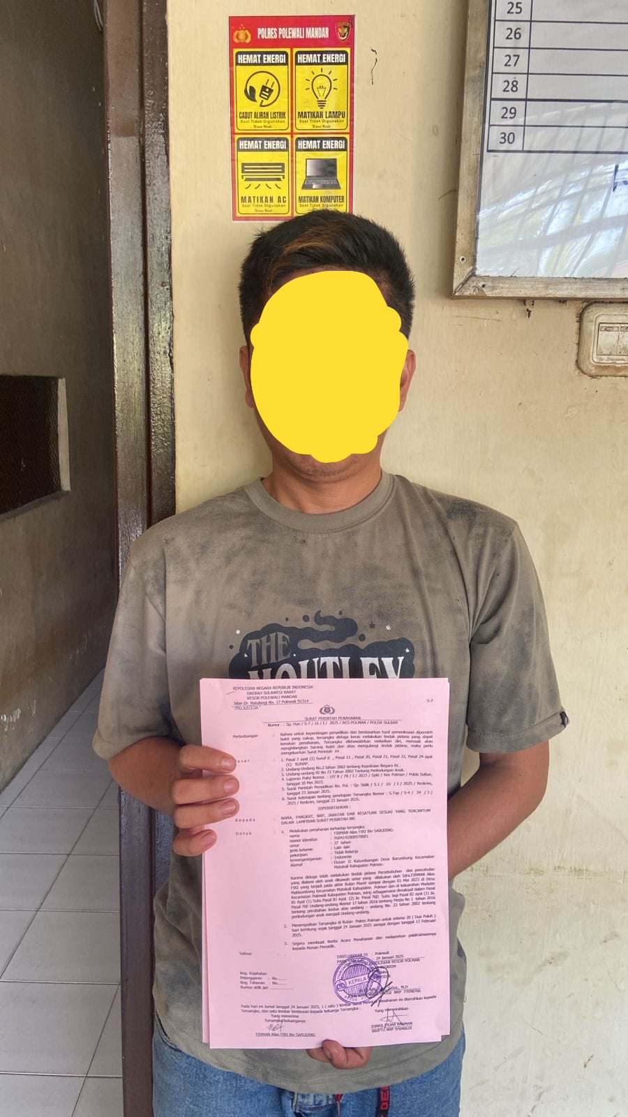 Saat ini pelaku sudah ditetapkan sebagai tersangka dan ditahan di Mapolres Polman dengan sangkaan pasal 81 ayat 1 subs pasal 81 ayat 2 Jo pasal 76d uu no 17 tahun 2016 dengan ancaman hukuman 15 tahun penjara