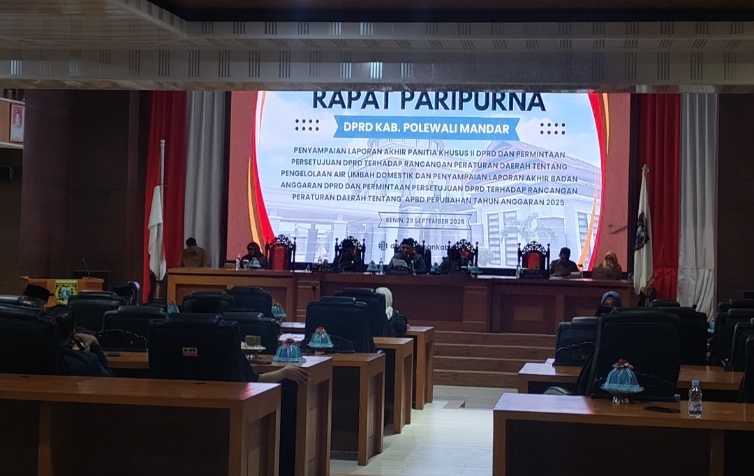 POLMAN, SULBARTODAY – Dewan Perwakilan Rakyat Daerah (DPRD) Kabupaten Polewali Mandar menggelar Rapat Paripurna pada Senin (29/9/2025) dengan agenda penting, penyampaian laporan akhir Panitia Khusus (Pansus) II DPRD terkait Rancangan Peraturan Daerah (Ranperda) tentang Pengelolaan Air Limbah Domestik serta laporan akhir Badan Anggaran DPRD mengenai Ranperda Perubahan APBD Tahun Anggaran 2025.