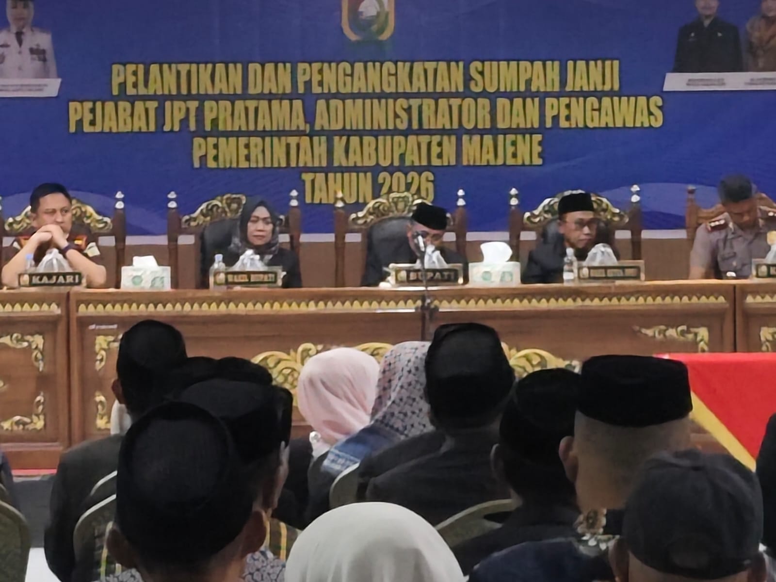 Di antaranya Kepala Kejaksaan Negeri Majene Andi Irfan, Kapolres Majene AKBP Muhammad Amiruddin, Wakil Ketua I DPRD Majene Abd. Wahab, Sekretaris Daerah H. Ardiansyah, serta para anggota DPRD, kepala OPD, camat, lurah, dan pejabat lainnya.