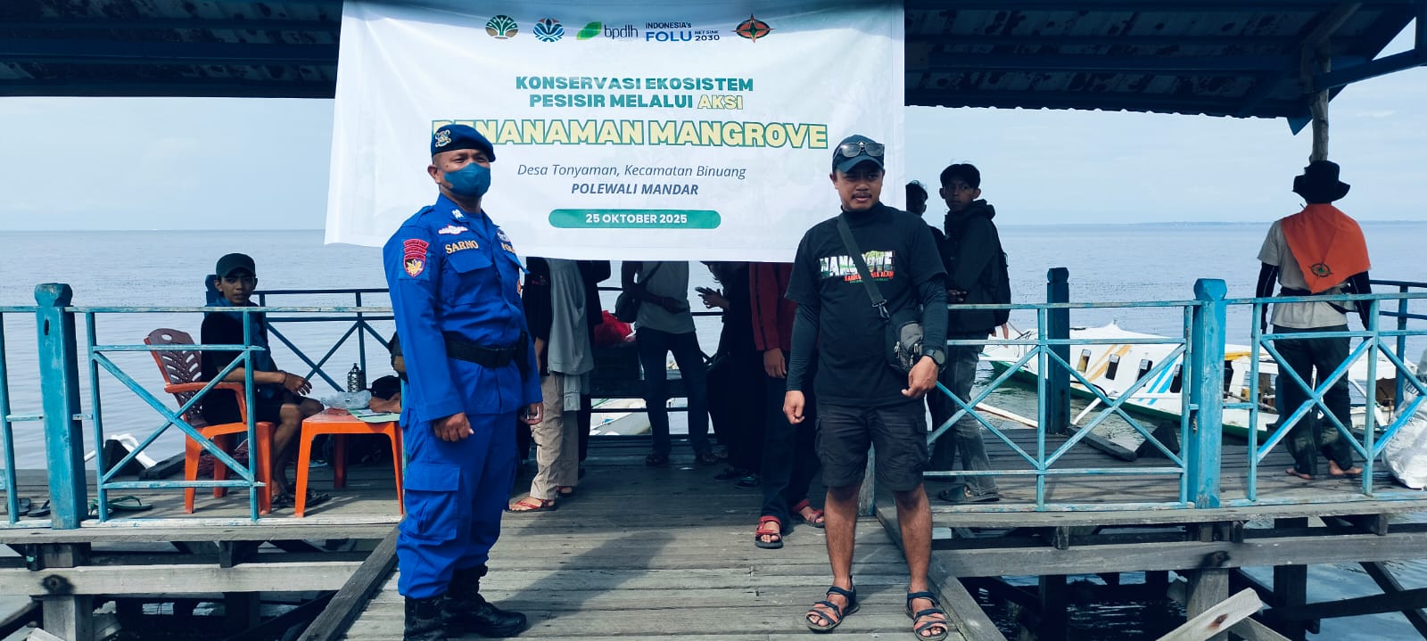 POLMAN, SULBARTODAY – Personel Satuan Polisi Air dan Udara (Sat Polairud) Polres Polman turut ambil bagian dalam kegiatan Konservasi Ekosistem Pesisir melalui Penanaman Mangrove yang dilaksanakan di Pulau Battoa, Dusun Lapejang, Desa Tonyamang, Kecamatan Binuang, Kabupaten Polewali Mandar, pada Sabtu (25/10/2025).