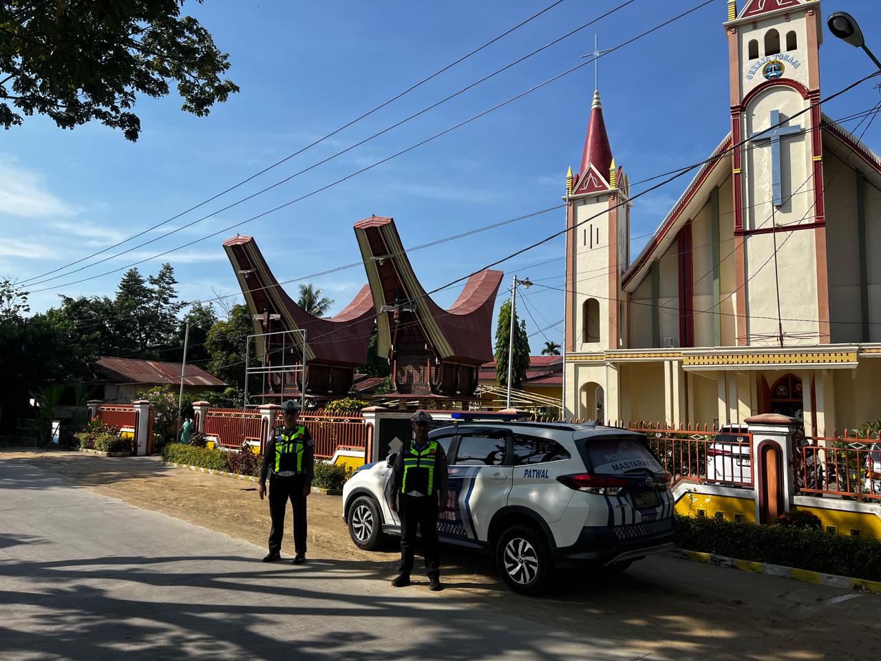 Satlantas Polres Polman Laksanakan Pengamanan dan Patroli Dialogis di Gereja