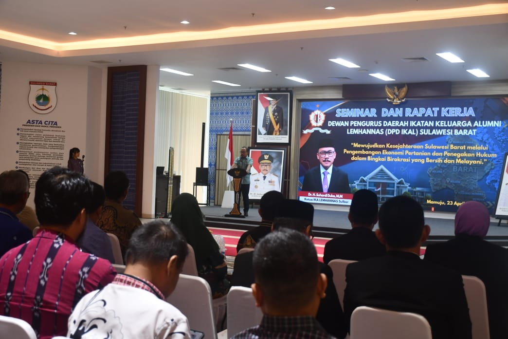 MAMUJU, SULBARTODAY – Gubernur Suhardi Duka membuka seminar dan rapat kerja Dewan Pengurus Daerah Ikatan Keluarga Alumni Lemhanas (DPD IKAL) Sulawesi Barat di Ballroom Andi Depu, Kantor Gubernur Sulbar, Kamis (23/4/2026).